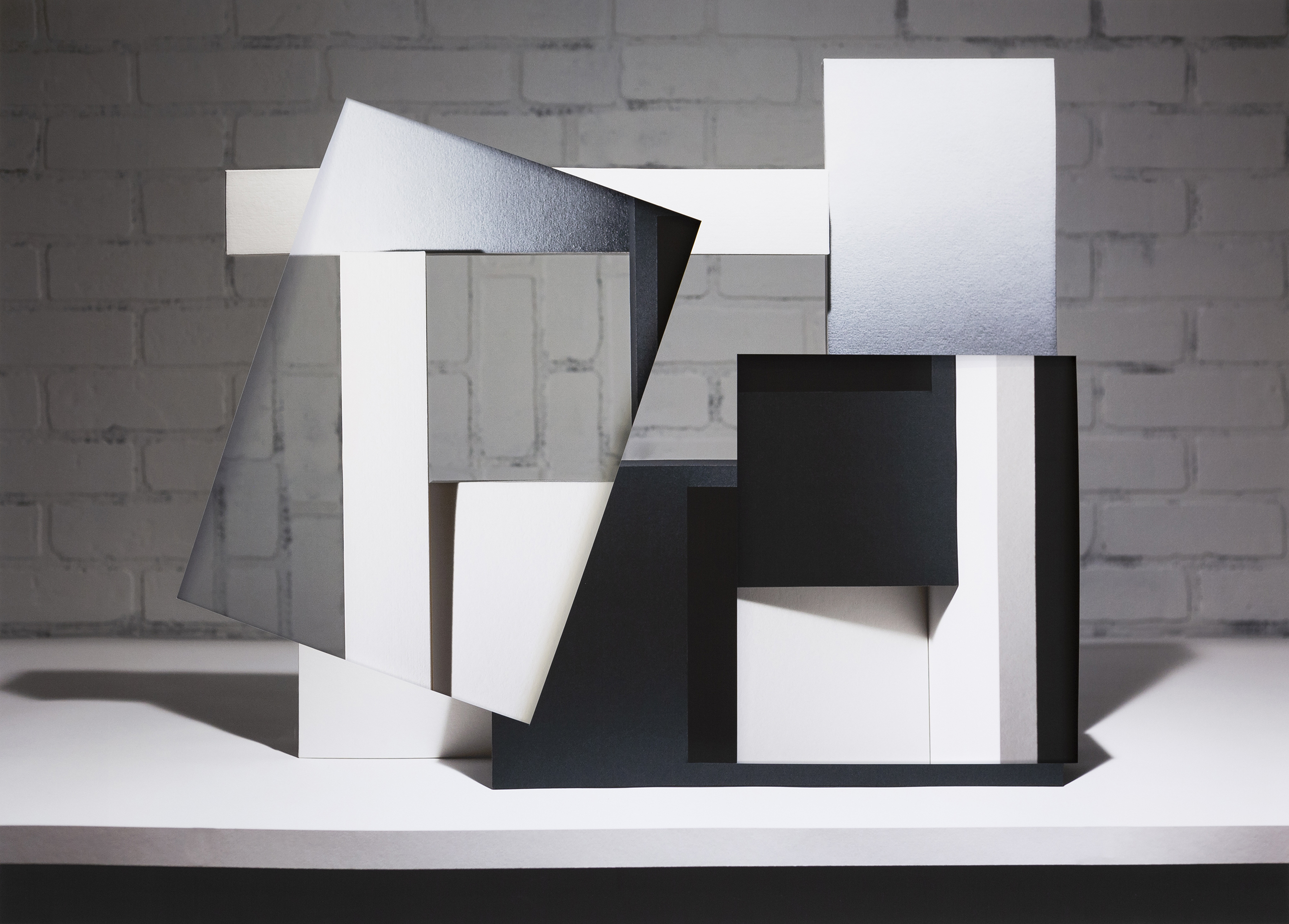 In response, I began a series of décollaged photographs that investigated the act of extraction for perceptual effect. The works in the conSTRUCT and reSTRUCTURES Series are produced by folding architectonic paper sculptures and documenting them in arrangements that respond to observations of constructed spaces and rhythms within urban grids. Once captured and printed, the photographs are cut into and layered to define deceptive passages of fractured geometry, associating the work with the paralleled processes of building and rebuilding. The resulting images depict scenarios that closely mediate the nuances between site-specificity, abstraction, representation, fact, and fiction.